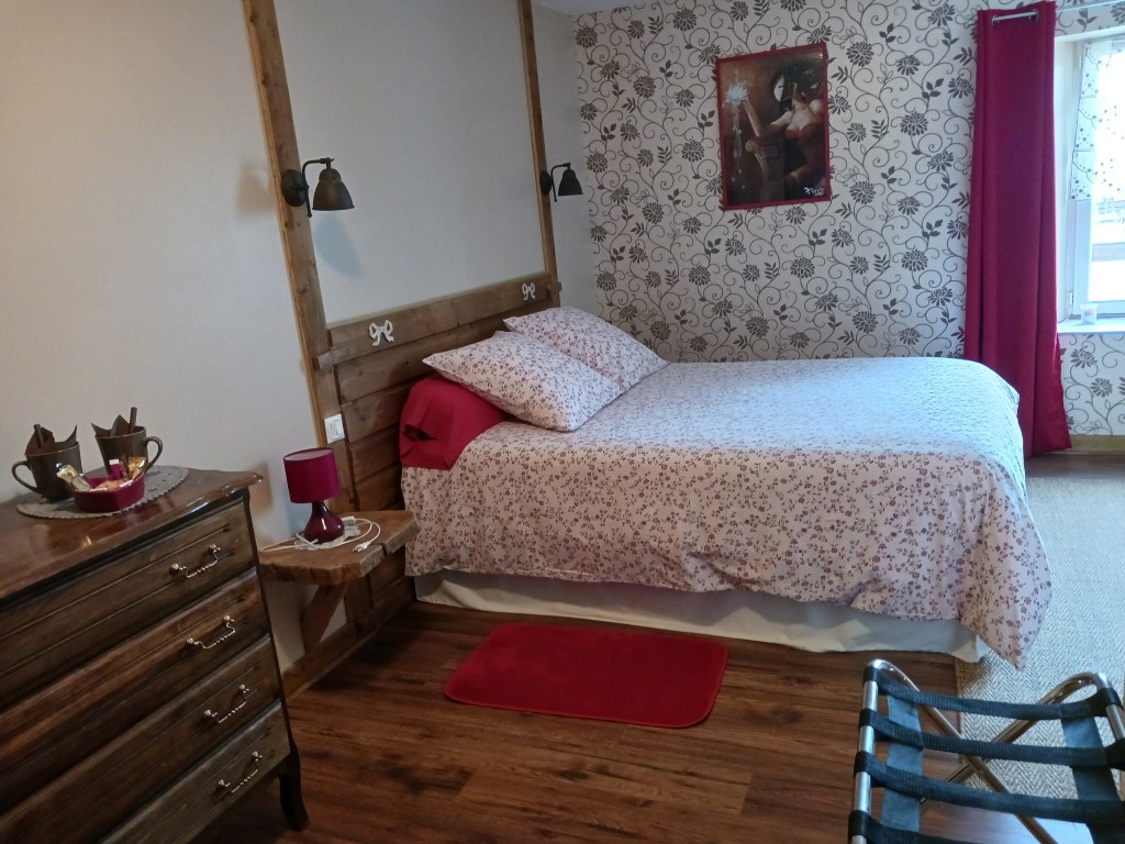 Cette chambre spacieuse possède une entrée indépendante, elle est équipée d’un lit double, d’une salle d’eau et WC privatifs, ainsi qu’un chauffage électrique. Nous pouvons sur demande y ajouter un lit pour une personne supplémentaire